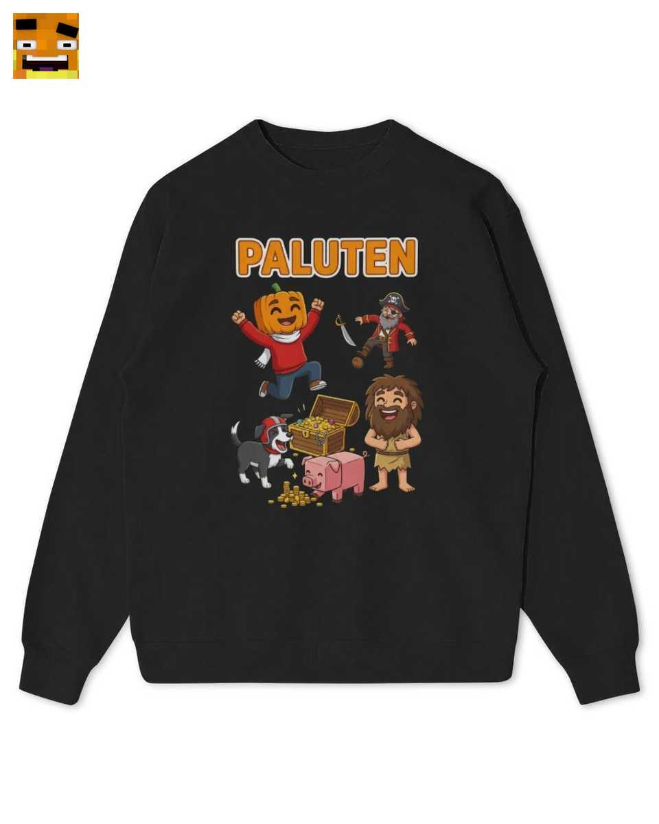 Das Design ist eine liebevolle Hommage an Palutens Welt. Es zeigt Palle als ikonischen Kürbiskopf, umgeben von seiner Abenteuer-Crew vor einer Schatztruhe. Dieses lustige Cartoon-Shirt fängt den Geist seiner Videos perfekt ein und ist ein klares Statement für jeden Fan.