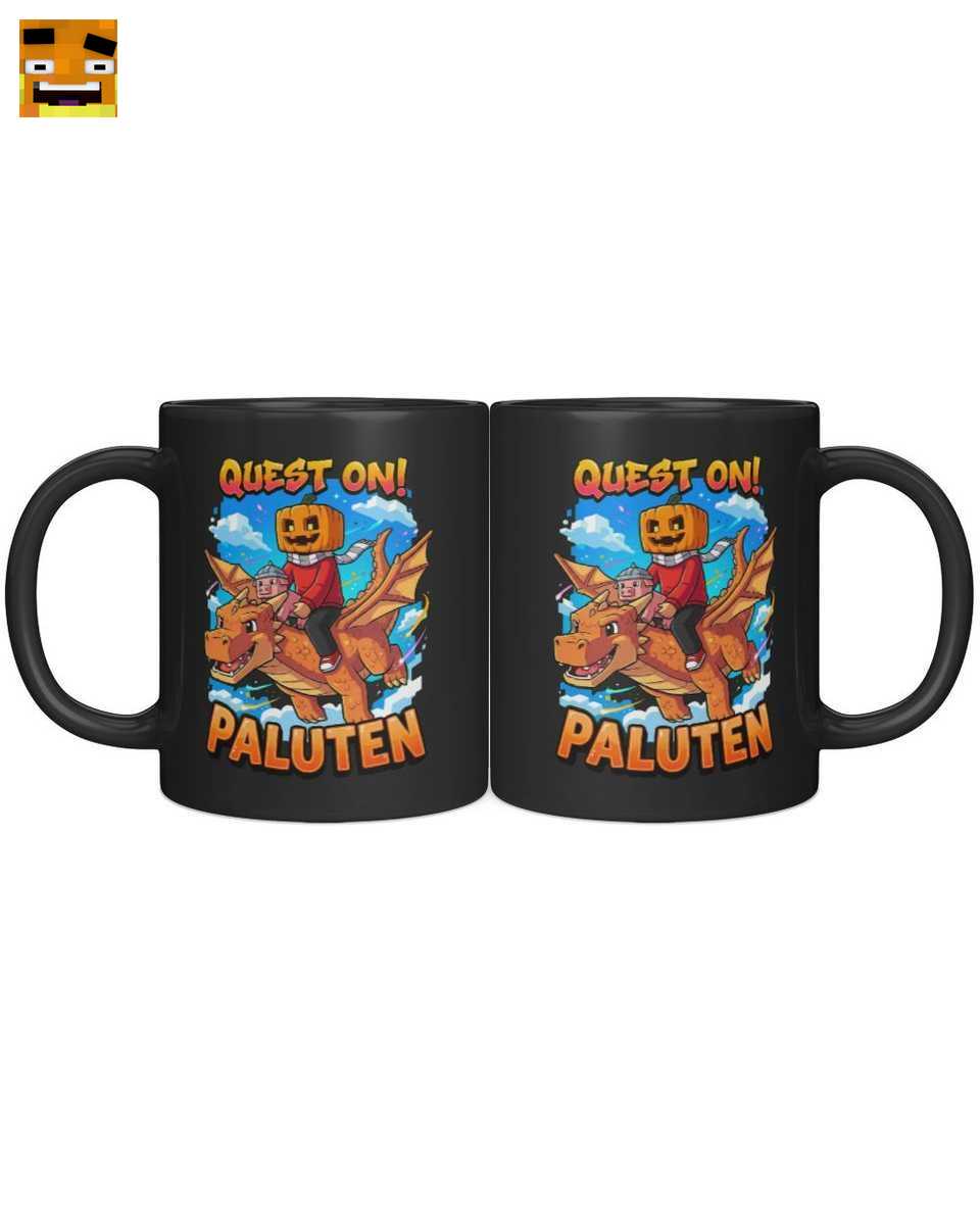 Diese Tasse ist mehr als nur ein Trinkgefäß; sie ist ein Statement und ein Stück Fankultur. Im Mittelpunkt steht das detailverliebte Drachenreiter Motiv: Paluten als legendärer Kürbis-Gamer, der auf einem majestätischen Drachen durch die Lüfte segelt. Sein treuer Begleiter, Edgar das Schwein, ist natürlich mit an Bord. Der dynamische Schriftzug ‘QUEST ON!’ über der Szene ist ein täglicher Ansporn, jede Herausforderung anzunehmen, sei es im Spiel oder im echten Leben. Die bunten Farbspritzer und der strahlend blaue Himmel im Hintergrund verleihen dieser Cartoon Tasse eine fröhliche und abenteuerliche Atmosphäre. Es ist das perfekte Stück Palle Merch für jeden, der die Welt von Paluten liebt.