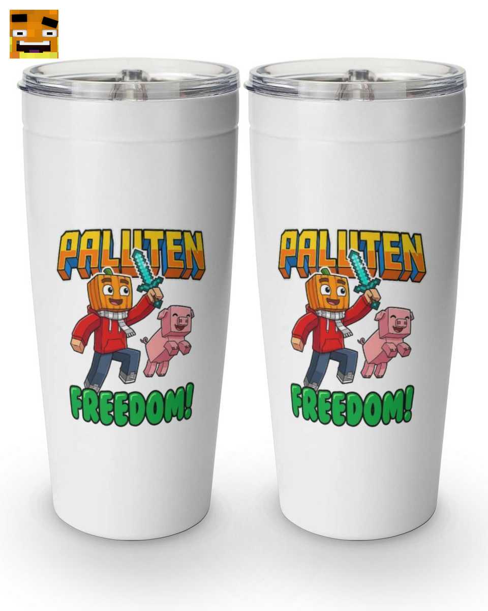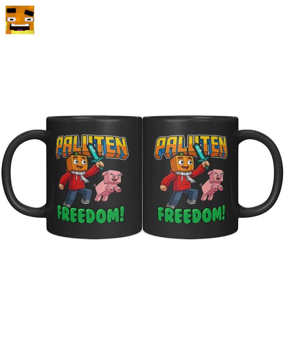 Das Design ist eine liebevolle Hommage an Palutens Welt. Es zeigt Palle als ikonischen Kürbiskopf-Gamer mit Pixel-Schwert, seinen Freund Edgar und den goldenen “PALUTEN” Schriftzug über dem motivierenden “FREEDOM!”-Slogan. Ein Muss für jeden Sammler von Freedom Squad Merch.