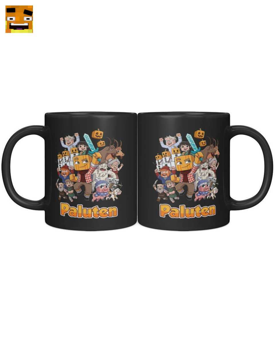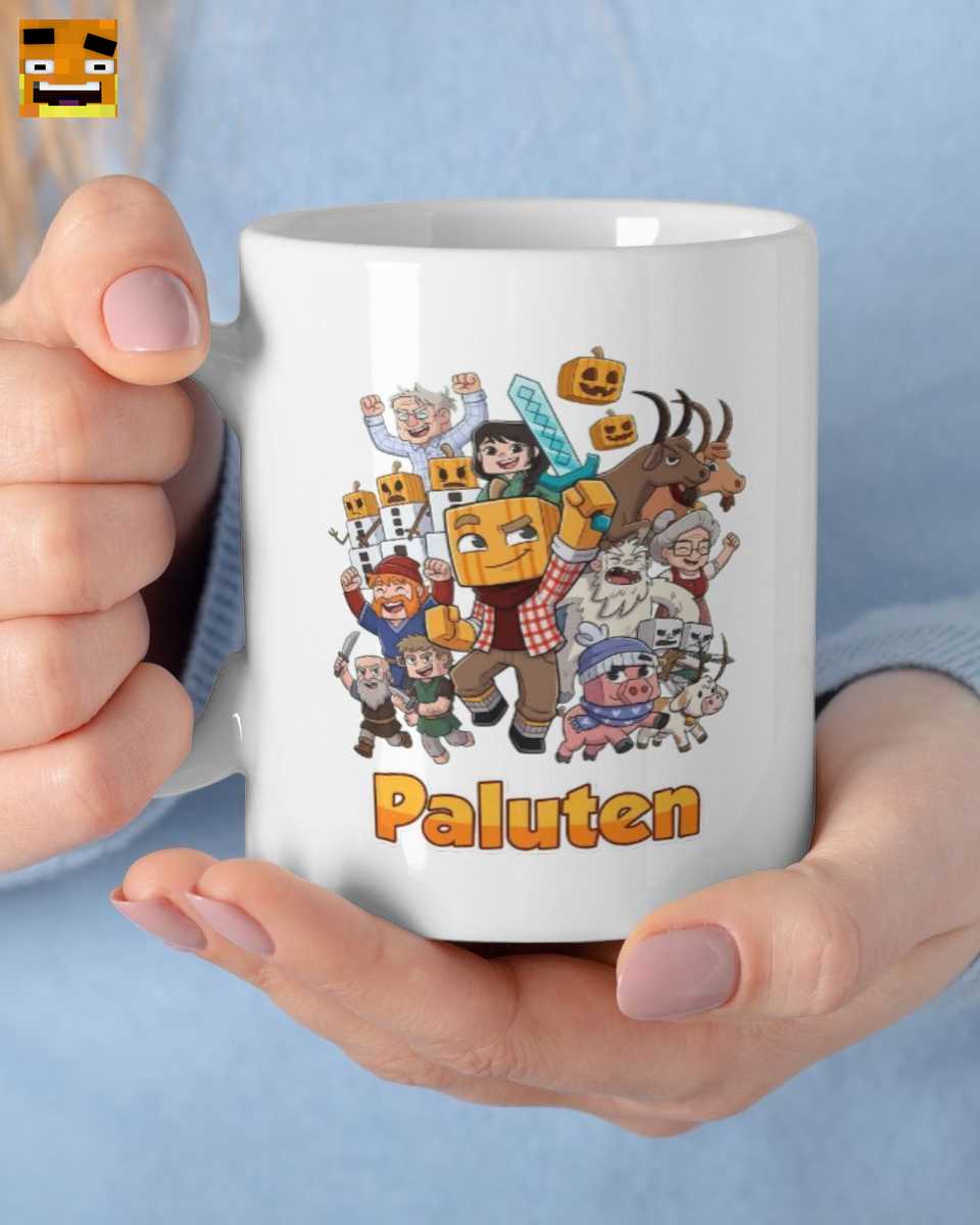 Diese Tasse ist ein echtes Stück Fankultur. Im Zentrum steht Paluten selbst, kampfbereit mit seinem pixeligen Schwert und dem unverwechselbaren Kürbiskopf Design. An seiner Seite findest du treue Weggefährten wie Edgar das Schwein und weitere Charaktere, die Fans aus unzähligen Minecraft-Abenteuern und dem Freedom Squad kennen und lieben. Das lustige Gaming Design fängt den Geist von “Paluten und Freunde” perfekt ein. Jeder Blick auf den Becher erinnert an die lustigsten und epischsten Momente aus seinen Videos. Es ist nicht nur eine Tasse, sondern ein Stück der Paluten Community, das du in den Händen halten kannst.