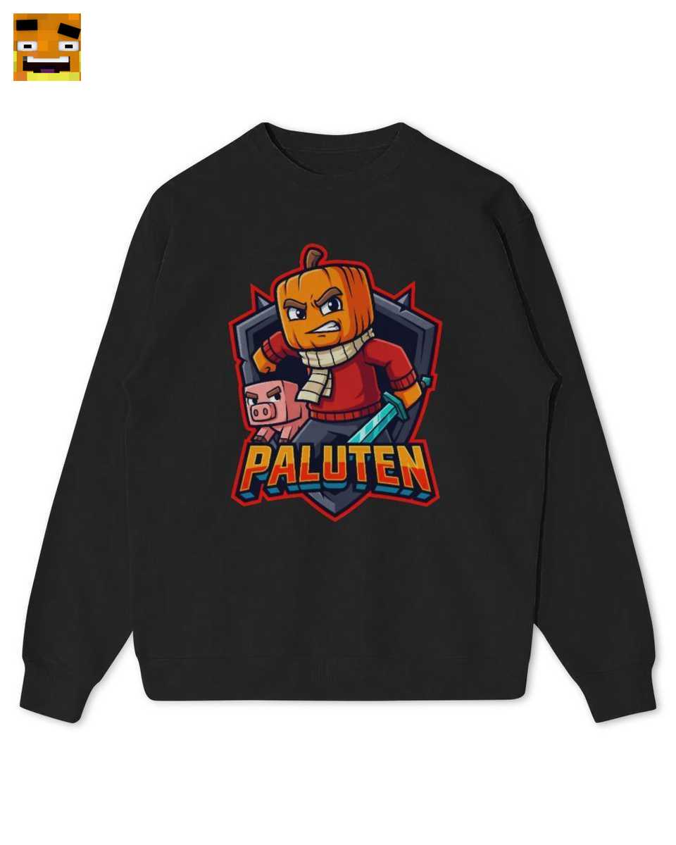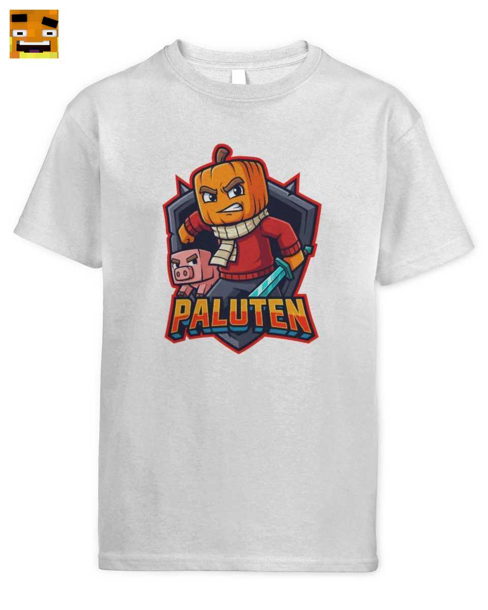 Dieses Design ist eine Hommage an Palutens ikonische Gaming-Welt. Es zeigt Palle als furchtlosen Kürbiskopf-Krieger mit seinem blauen Schwert und Edgar, dem Pixel-Schwein, an seiner Seite. Der detailreiche Pixel-Art-Stil fängt die Essenz seiner Minecraft-Abenteuer perfekt ein.