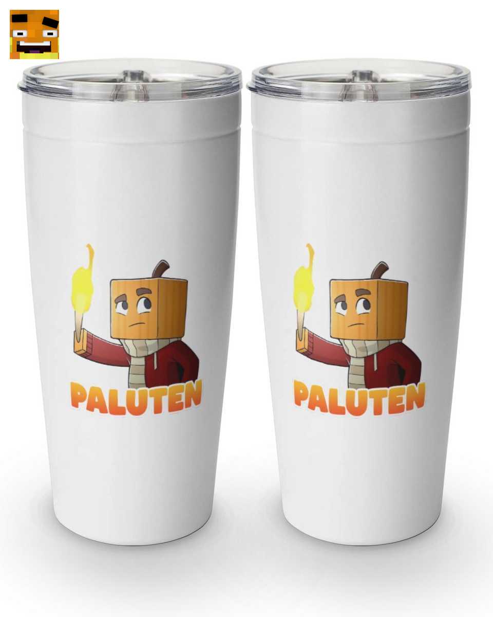 Das Design fängt die Essenz von Palutens Abenteuern perfekt ein. Der ikonische Kürbiskopf-Charakter im Pixel-Art-Stil, komplett mit Fackel und gestreiftem Schal, ist eine direkte Hommage an seine Let’s Plays und den unverkennbaren Charme des Freedom Squads.