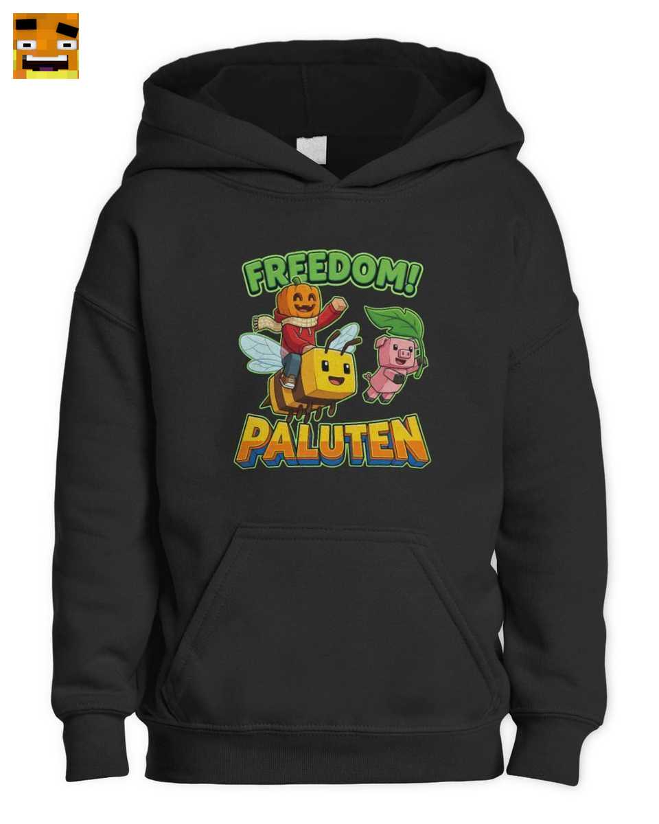 Das Design ist eine liebevolle Hommage an Palutens “Freedom”-Universum. Es zeigt ikonische Charaktere wie Palutens Kürbistumor Skin, sein treues Schweinchen Edgar und die Biene aus dem Minecraft Freedom Projekt. Der “FREEDOM!”-Schriftzug fängt den Geist der Abenteuerlust und Freundschaft perfekt ein.