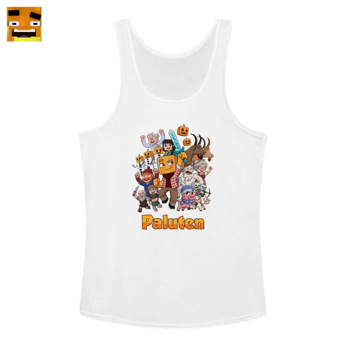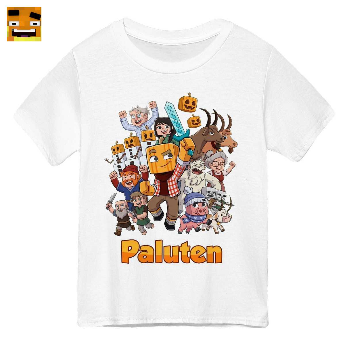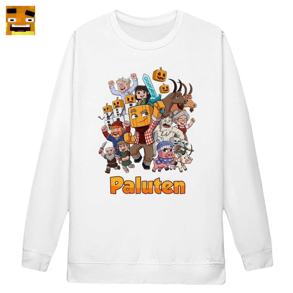 Dieses Shirt ist mehr als nur ein Stück Stoff – es ist ein tragbares Kunstwerk und ein Bekenntnis zur Paluten Community. Das lebhafte Cartoon Gaming Team Design erzählt eine Geschichte, die jeder Fan sofort erkennt. Im Zentrum steht natürlich Palle selbst, der legendäre Let’s Player, erkennbar an seinem Markenzeichen, dem Kürbiskopf. Bewaffnet mit einem Diamantschwert ist er bereit, sich in das nächste Videospiel Abenteuer zu stürzen.