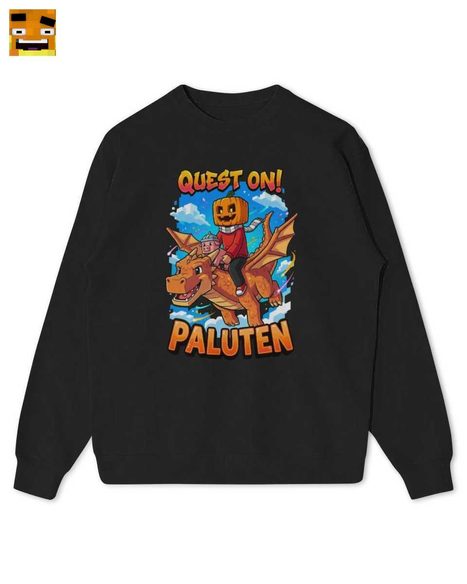 Dieses exklusive Design fängt die Essenz von Palutens Welt perfekt ein. Es zeigt Palle mit seinem ikonischen Kürbiskopf als mutigen Drachenreiter, begleitet von seinem treuen Schwein Edgar. Der motivierende “Quest On!” Spruch macht es zum ultimativen Fanartikel für Gamer.