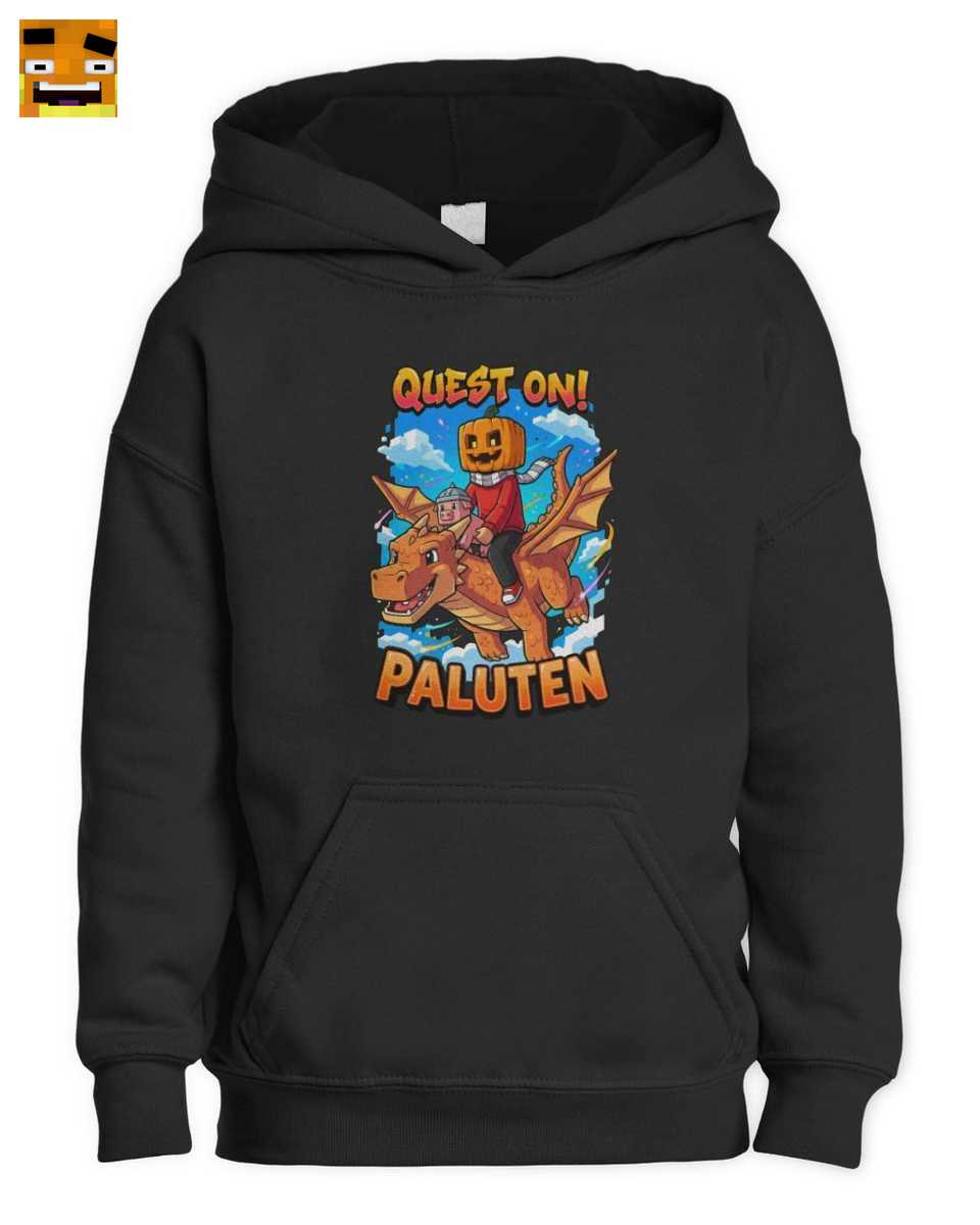 Dieses T-Shirt ist nicht einfach nur ein Kleidungsstück mit einem Bild. Es ist eine Geschichte, eine Hommage an die Abenteuer, die Millionen von Fans mit Paluten auf YouTube erleben. Jedes Detail des Designs wurde mit Liebe gestaltet, um die Herzen der Community höherschlagen zu lassen. Im Zentrum steht natürlich Palle selbst, aber nicht als gewöhnlicher Gamer, sondern als Held seiner eigenen epischen Geschichte: der Drachenreiter. Mit seinem unverkennbaren Kürbiskopf sitzt er selbstbewusst auf dem Rücken eines mächtigen, aber freundlich aussehenden orangefarbenen Drachen. Dieses Bild symbolisiert Mut, Abenteuerlust und die Fantasie, die Palutens Content ausmacht.