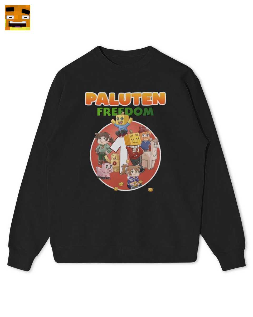 Das Design fängt die Essenz von Palutens Freedom-Projekt ein. Es zeigt Paluten mit seinem ikonischen Kürbiskopf, das treue Schweinchen Edgar und den gesamten Freedom Squad in einem einzigartigen Pixel Art Stil, der sofort an Minecraft und die Welt der Let’s Plays erinnert.