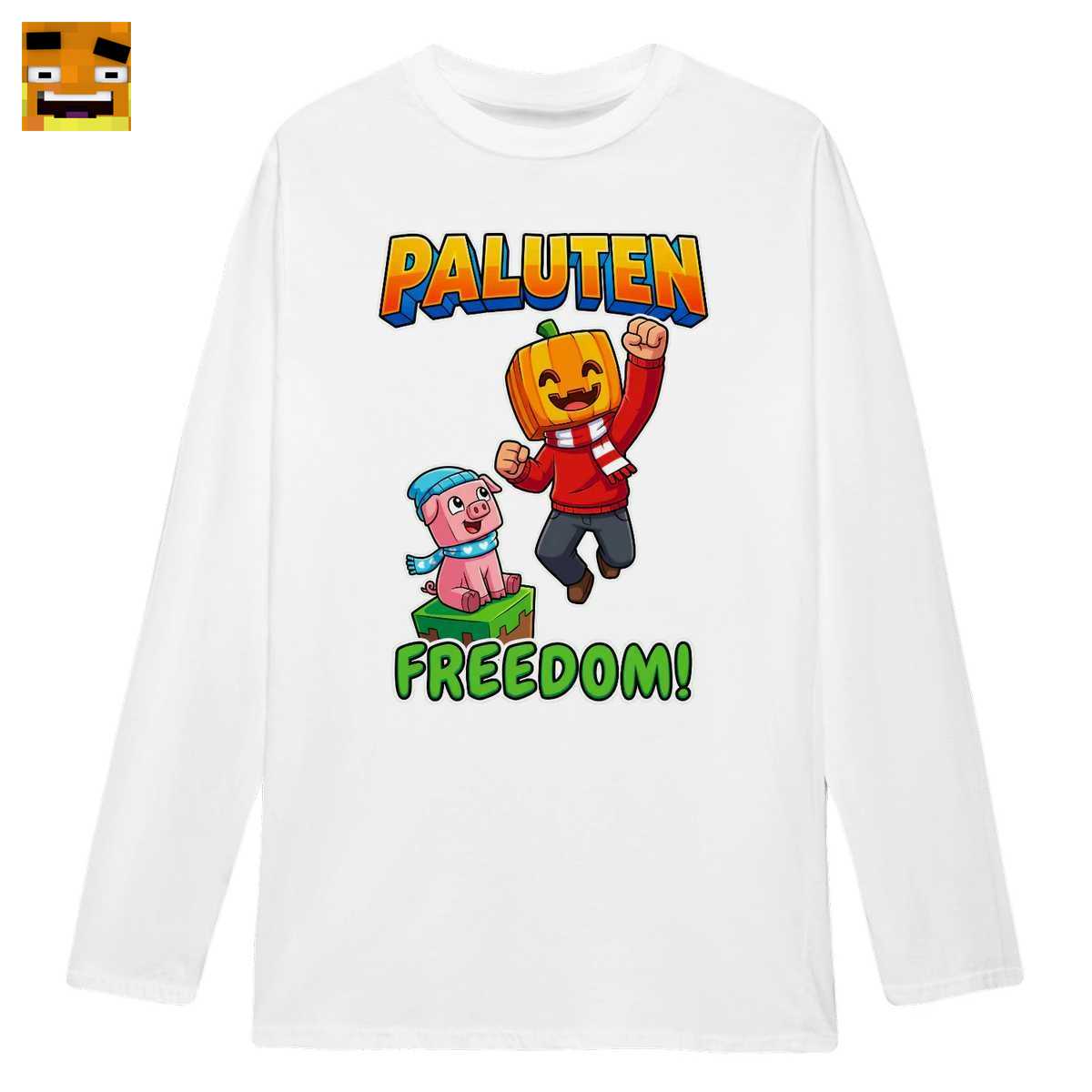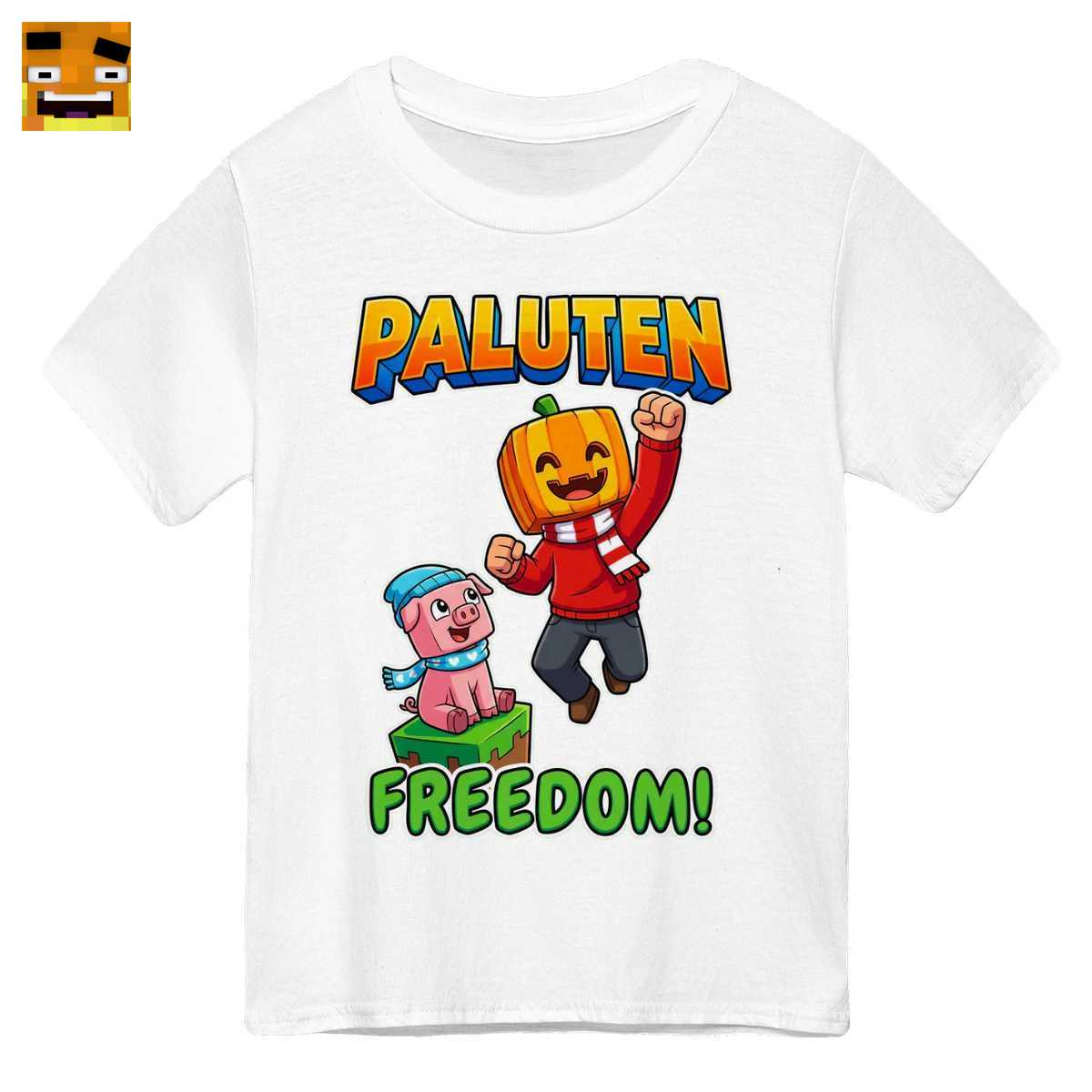 Paluten Merch: Niedlicher Kürbis Block Gaming Charakter T-Shirt – Freedom Projekt Fan Design