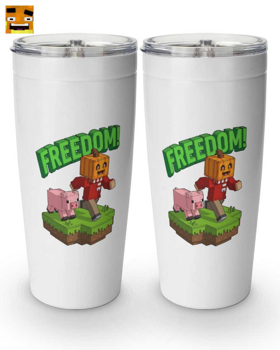 Diese Tasse ist eine Hommage an eines der legendärsten Projekte der deutschen YouTube-Geschichte. Das Motiv “Paluten und Edgar” weckt sofort Erinnerungen an spannende Abenteuer und lustige Momente. Der unverkennbare Kürbiskopf und das süße Schweinchen sind im charmanten Pixel-Art-Stil gehalten, der perfekt zur Minecraft-Ästhetik passt. Der “FREEDOM!”-Schriftzug über dem Duo ist mehr als nur ein Wort – er ist das Motto einer ganzen Community. Mit diesem Becher zeigst du, dass du Teil davon bist. Er ist der perfekte Gesprächsstarter und ein Zeichen deiner Zugehörigkeit zum Freedom Squad.
