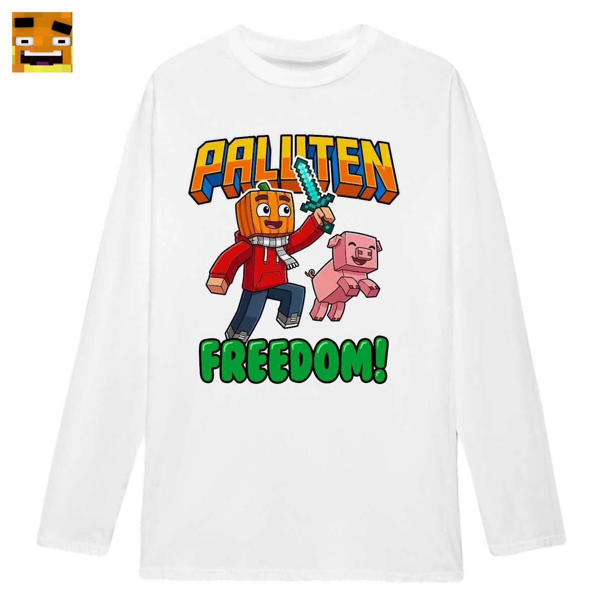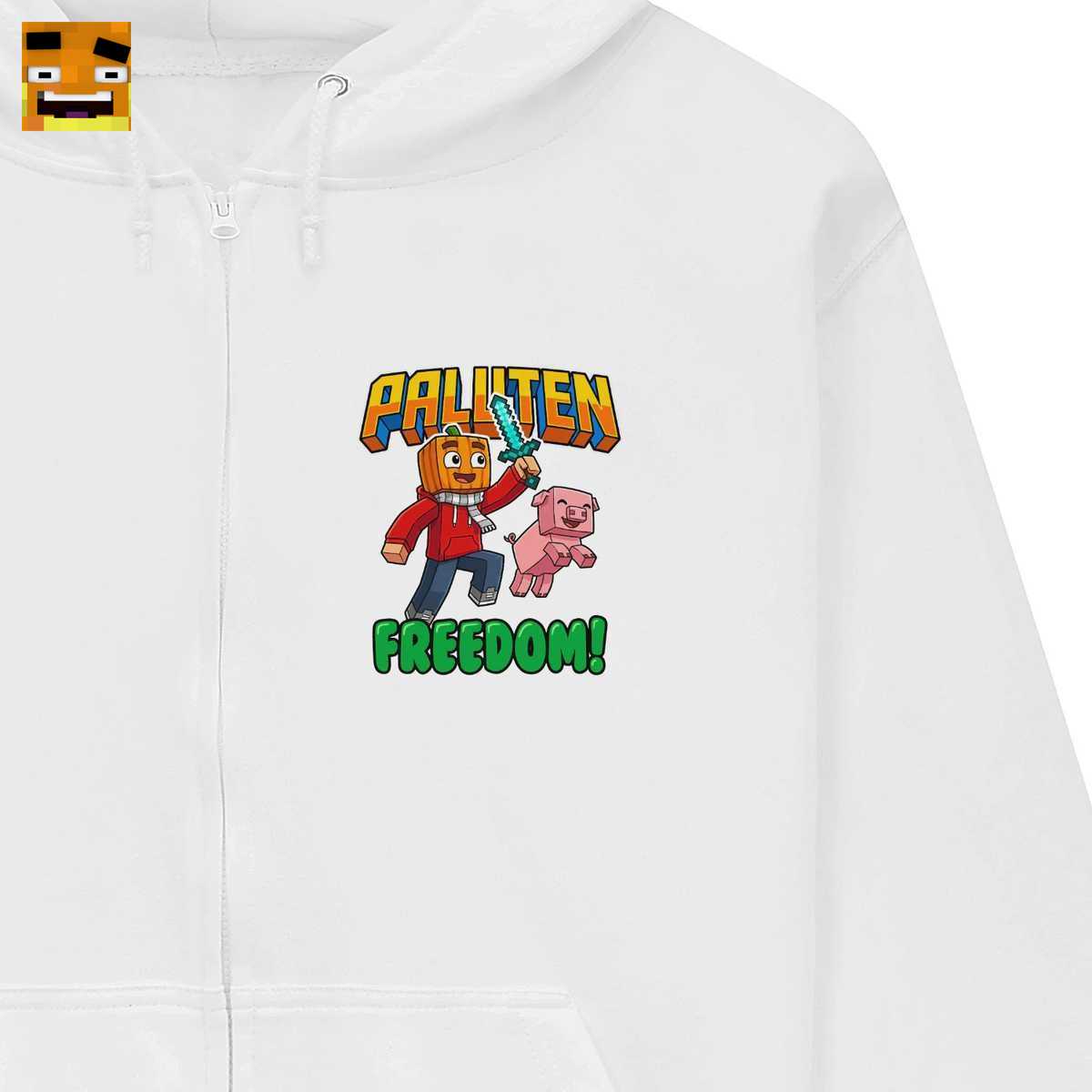 Dieses Design ist eine Hommage an die epischen Abenteuer von Palle und Edgar. Es zeigt Paluten im ikonischen Kürbis Gamer Design mit rotem Hoodie und Pixel-Schwert, begleitet von seinem quirligen Freund Edgar. Die Schriftzüge ‘PALUTEN’ und ‘FREEDOM!’ fangen die Essenz des Freedom Squads ein.