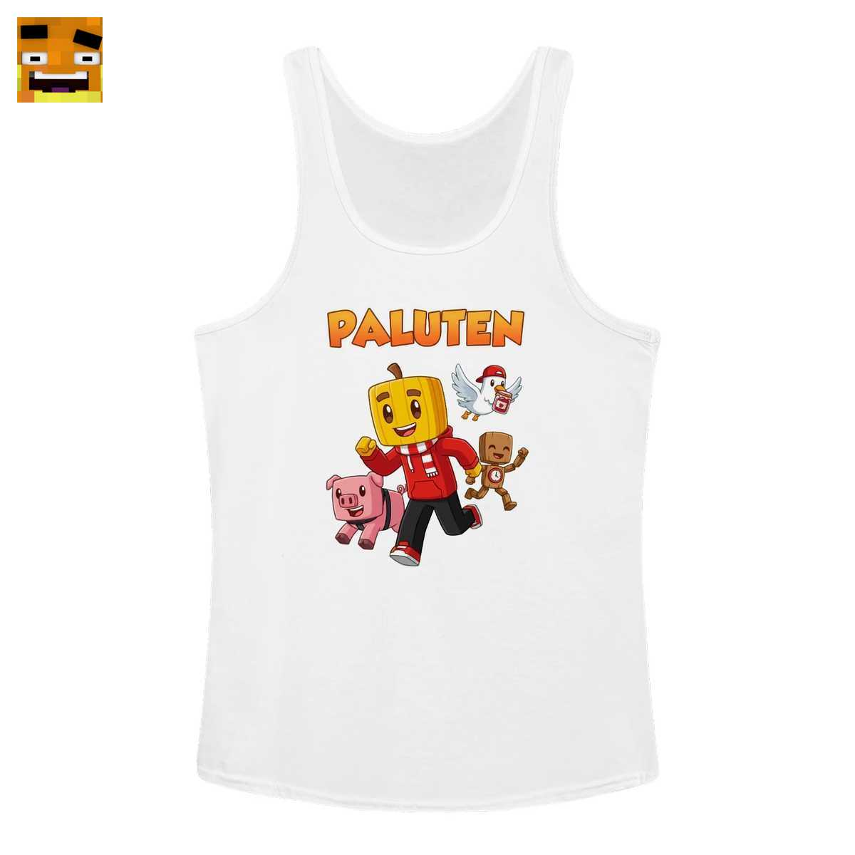 Doch Palle ist selten allein! An seiner Seite rennt sein unverwechselbarer Begleiter, Edgar das Schwein. Edgar ist für viele Fans genauso wichtig wie Paluten selbst und ein Symbol für Loyalität und Freundschaft. Sein Auftritt auf dem Shirt ist ein Muss für jeden, der das “Team Edgar und Kürbis” liebt. Die Gruppe wird durch zwei weitere charmante Charaktere ergänzt: einen kleinen, detailreichen Uhren-Roboter und einen witzigen Vogel mit einer roten Kappe. Jede Figur ist liebevoll im Cartoon-Stil gezeichnet und trägt zur fröhlichen, actiongeladenen Atmosphäre bei. Der große, orangefarbene ‘PALUTEN’ Schriftzug über der Szene lässt keinen Zweifel daran, zu wem dieses “Let’s Play Merchandising” gehört. Das “Paluten Abenteuer Team Design” ist eine perfekte visuelle Zusammenfassung von allem, was die Community an Palle schätzt: Spaß, Zusammenhalt und die Freude am gemeinsamen Abenteuer.