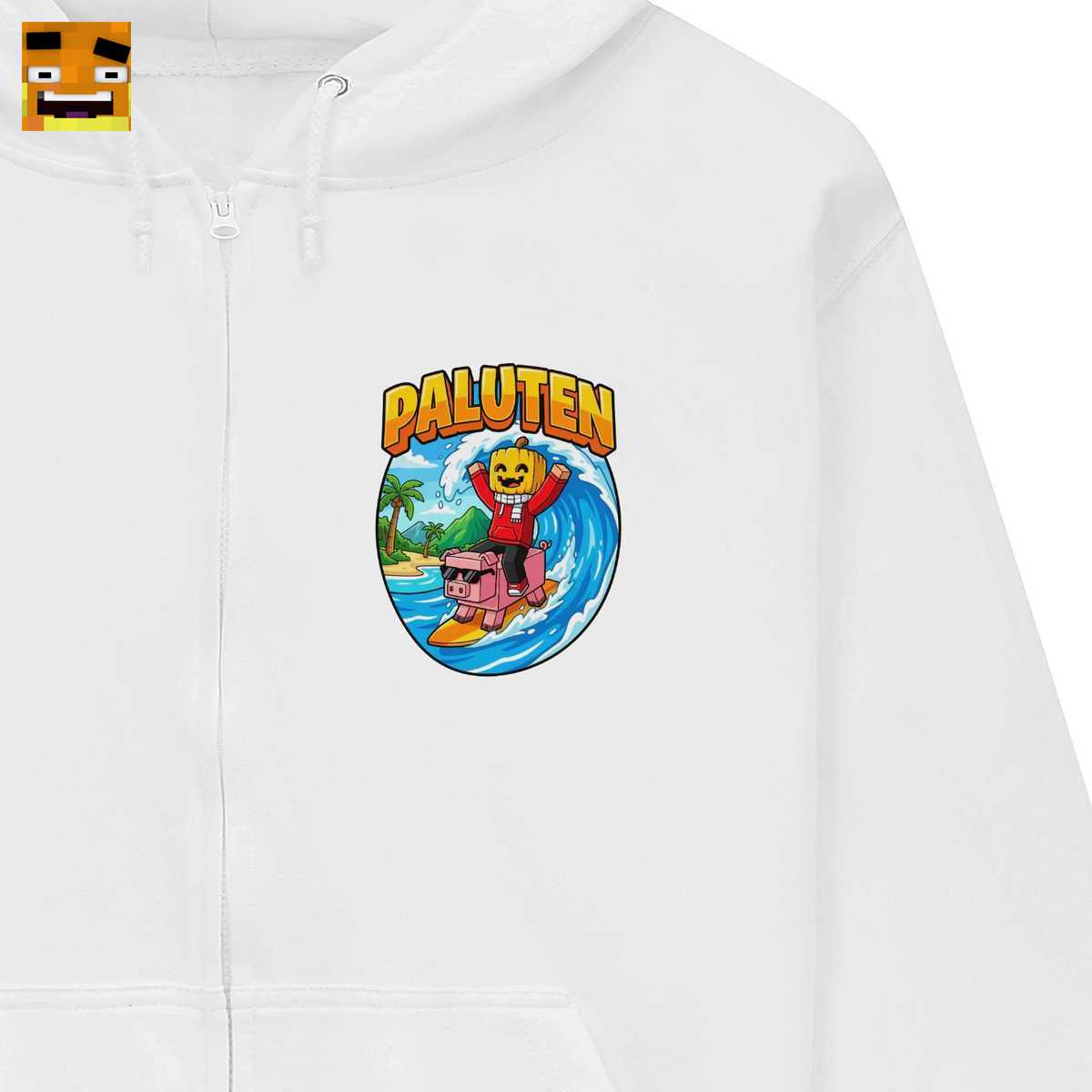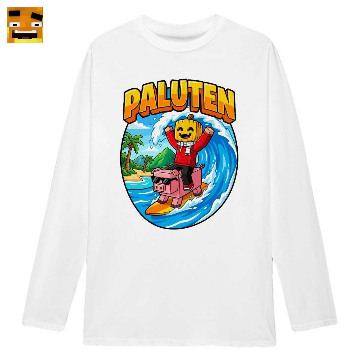 Der Hintergrund mit der sonnigen Tropeninsel und den Palmen versetzt dich sofort in Urlaubsstimmung und macht dieses Shirt zum idealen Paluten Urlaubs-Merch. Der auffällige ‘PALUTEN’ Schriftzug in einem warmen orange-gelben Farbverlauf krönt die Szene und lässt keine Zweifel offen, wem deine Fan-Liebe gehört. Das Edgar reitet Welle Design ist eine Hommage an die Abenteuer aus der Welt von Minecraft und an die unzertrennliche Freundschaft zwischen Palle und Edgar – ein Muss für jeden Fan der Paluten Sommer Kollektion.