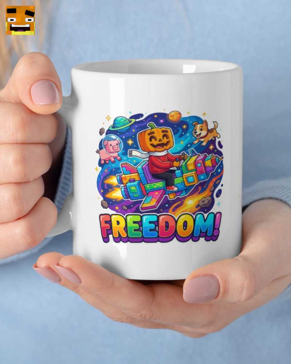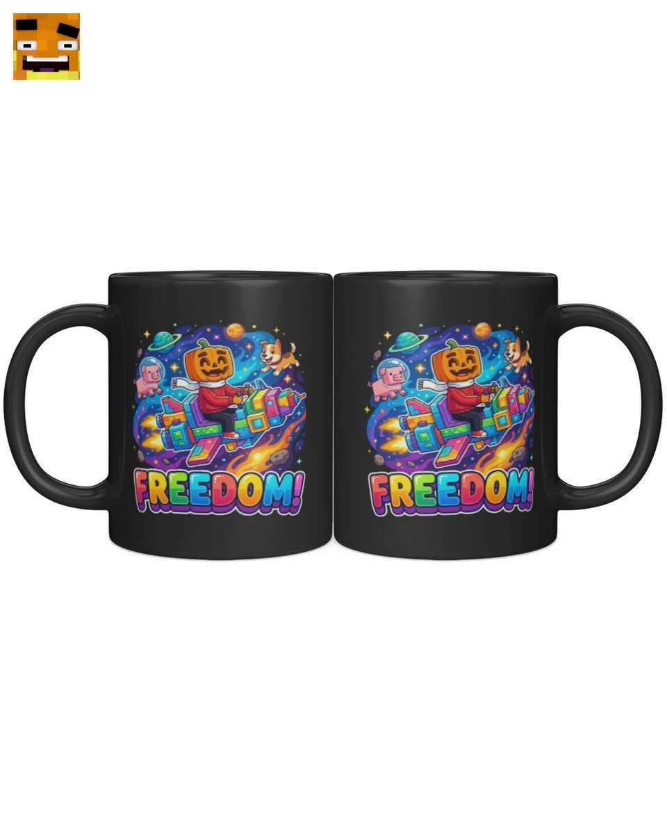 Diese Tasse erzählt eine Geschichte. Im Mittelpunkt steht Paluten selbst, dargestellt als fröhlicher Kürbis-Charakter, der souverän sein Regenbogen-Raumschiff durch die Weiten des Alls steuert. An seiner Seite darf natürlich sein bester Freund nicht fehlen: Edgar, das kleine Schweinchen, trägt einen Astronautenhelm und ist bereit für jedes Abenteuer. Das lebhafte Comic Design fängt die Energie und den Spaß von Palutens Welt perfekt ein. Planeten, Sterne und leuchtende Farben schaffen ein dynamisches Spacemotiv, das sofort gute Laune verbreitet. Der krönende Abschluss ist der unverkennbare “FREEDOM!” Schriftzug in bunten Blockbuchstaben, der das Gefühl von Freiheit und unbegrenzten Möglichkeiten symbolisiert, das Fans so an Palle lieben. Es ist mehr als nur eine Tasse – es ist ein Stück Palutens Welt für Ihr Zuhause.