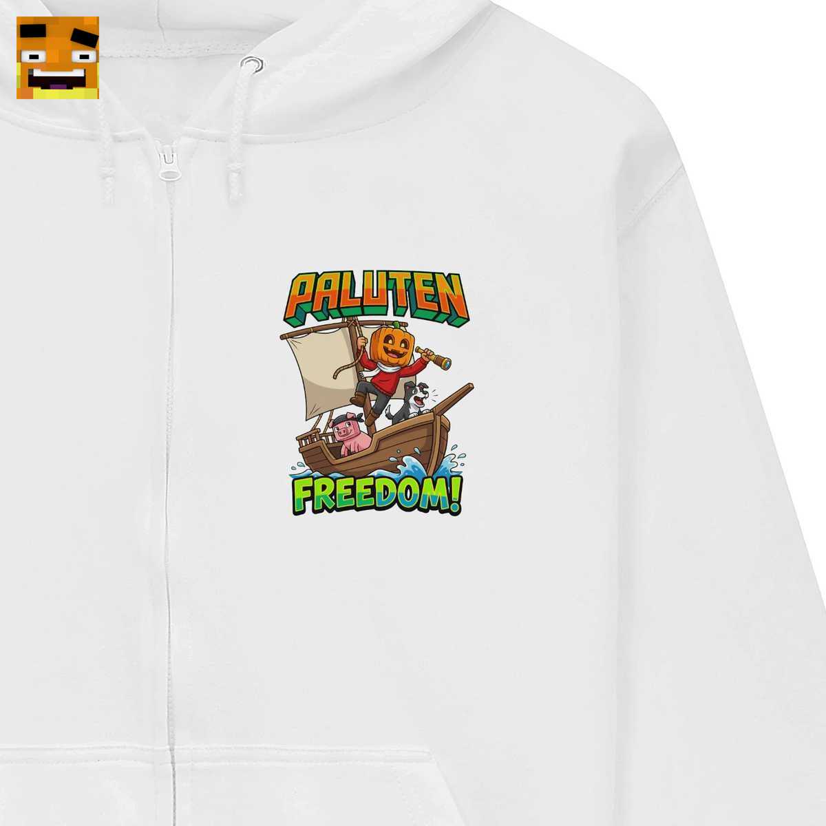 Das Design ist eine Hommage an Palutens legendäres “Freedom”-Projekt. Es zeigt Palle mit seinem Kürbiskopf, Edgar das Schwein und einen Hund auf einem Schiff, bereit für neue Abenteuer. Die leuchtenden Schriftzüge “PALUTEN” und “FREEDOM!” machen es zum ultimativen Erkennungszeichen für jeden Fan.