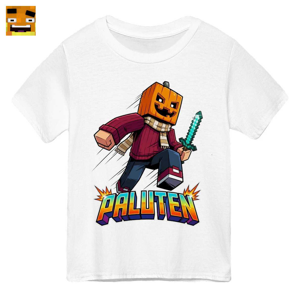 Paluten Merch: Kürbiskopf Gamer-Held T-Shirt – Action-Pixel-Art