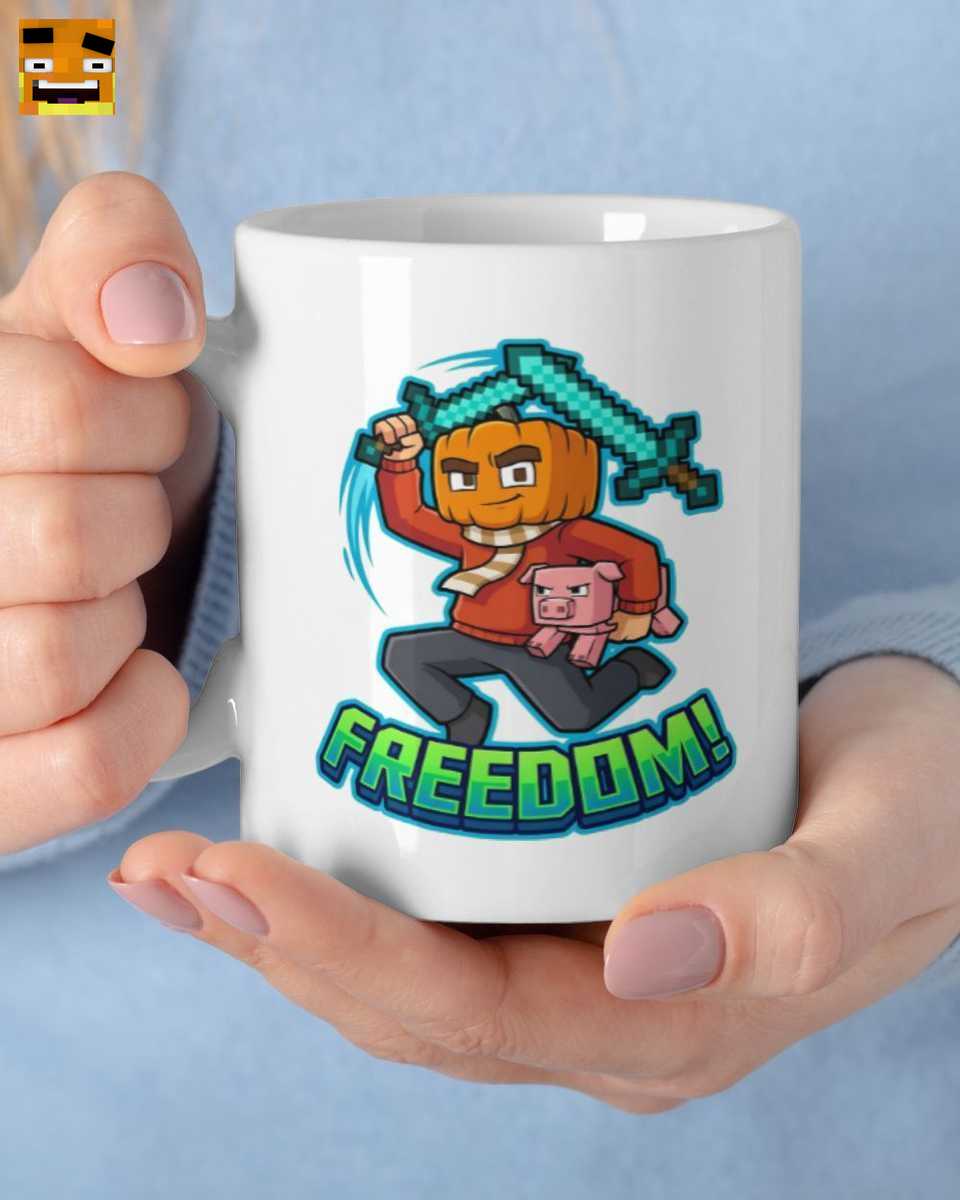 Diese Kürbiskopf Tasse ist nicht einfach nur ein Fanartikel, sie ist eine Geschichte. Das liebevoll gestaltete Cartoon Gamer Motiv fängt die Essenz von Palutens Minecraft-Abenteuern perfekt ein. Im Mittelpunkt steht Paluten in seinem berühmten Kürbiskopf Skin, dynamisch in Szene gesetzt mit zwei funkelnden Pixel-Schwertern. An seiner Seite eilt sein treuer Begleiter, Edgar das Schwein, der die Herzen der Community im Sturm erobert hat. Das Paluten und Edgar Motiv weckt sofort Erinnerungen an unzählige lustige und spannende Let’s Play-Momente. Über der Szene prangt der kraftvolle “Freiheit!”-Schriftzug, das Motto des Freedom Squads, das für Freundschaft, Spaß und grenzenlose Kreativität steht. Jeder Blick auf diesen YouTuber Becher ist wie ein Gruß von Ihrem Lieblings-Creator.