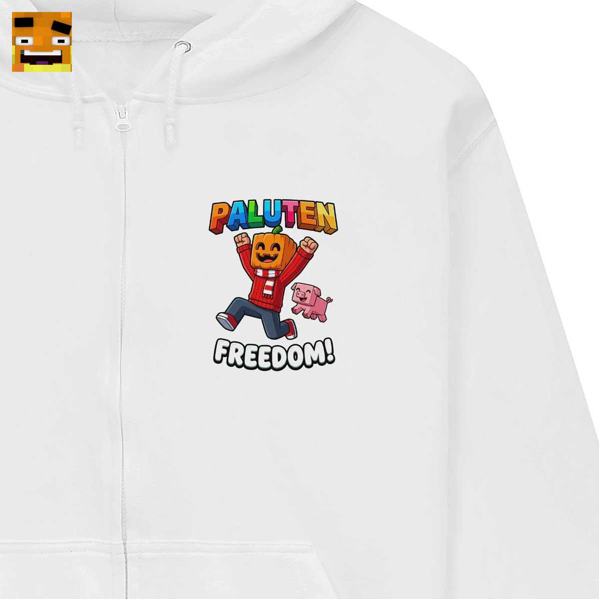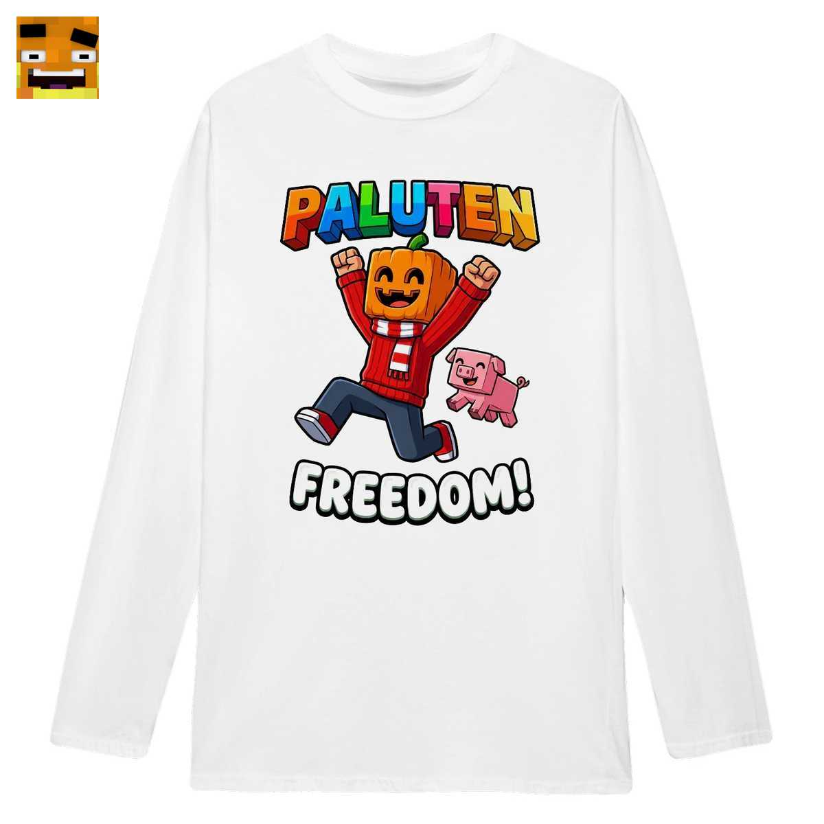 Über der Szene prangt der “PALUTEN”-Schriftzug in leuchtenden Regenbogenfarben. Diese Farben stehen für Vielfalt, Positivität und die bunte Community, die Palle über Jahre aufgebaut hat. Darunter das entscheidende Wort: “FREEDOM!”. Es ist der Kern von Palutens Minecraft-Abenteuern, der Schrei nach Unabhängigkeit und der Aufruf, die eigene Welt zu gestalten. Dieses Kürbiskopf und Schwein T-Shirt ist somit mehr als nur ein Fanartikel. Es ist ein Stück “Minecraft Freiheit Abenteuer Merch”, das dich daran erinnert, jeden Tag dein eigenes Abenteuer zu leben. Das gesamte Design im coolen Gaming- und Comic-Stil macht es zum perfekten Let’s Play Fanartikel für jeden, der die Energie und den Optimismus der Gaming-Kultur liebt.
