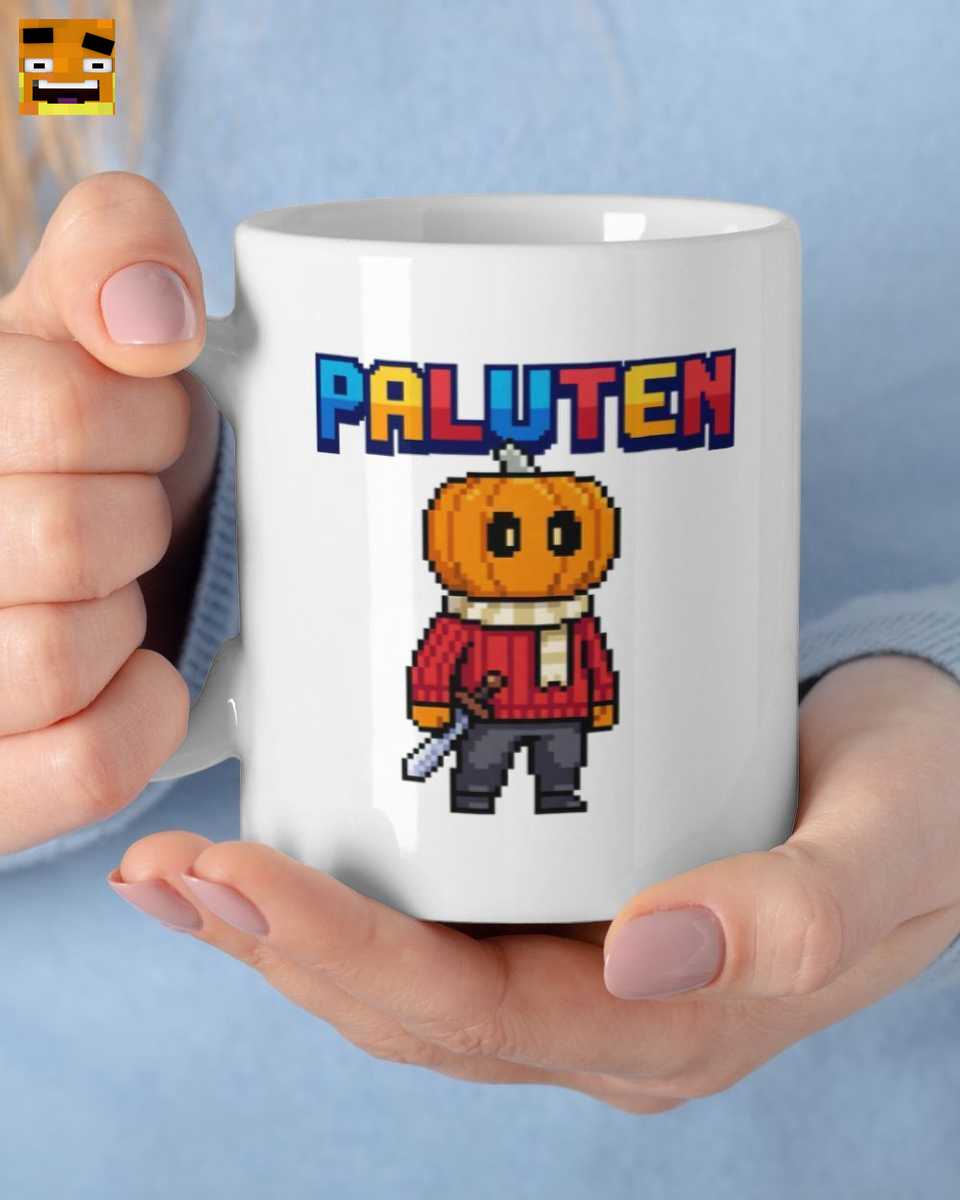 Dieses Design ist eine liebevolle Hommage an Palutens ikonischen Kürbiskopf-Charakter im unverkennbaren Minecraft-Stil. Die Kombination aus Pixel-Art, dem Schwert und dem bunten Schriftzug macht die Tasse zu einem sofort erkennbaren Stück Fan-Merchandise und einem echten Sammlerstück.