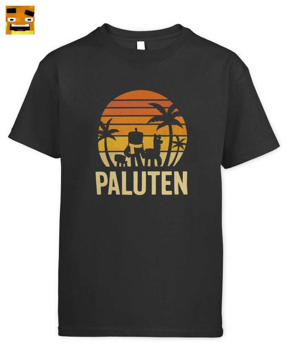 Dieses Gefühl der Freundschaft wird vor die Kulisse eines atemberaubenden Retro-Sonnenuntergangs gesetzt. Die warmen Orange-, Gelb- und Rottöne erinnern an den klassischen 80er Jahre Stil und wecken eine wohlige Nostalgie. Es ist ein Vintage Sonnenuntergang Design, das an alte Arcade-Spiele und die Anfänge der Gaming-Kultur erinnert. Umrahmt wird die Szene von stilisierten Palmen Silhouetten, die dem Shirt einen coolen, sommerlichen Vibe verleihen – perfekt für sonnige Tage im Freien oder die nächste Gaming-Session im Zimmer. Der fette, stilisierte Schriftzug „PALUTEN“ unter dem Motiv lässt keine Zweifel offen, wem die Fan-Liebe gilt. Dieses T-Shirt ist mehr als nur YouTuber Kleidung für Kinder; es ist ein Stück der Paluten Community, ein Bekenntnis zu einer Welt voller Abenteuer und Lachen.