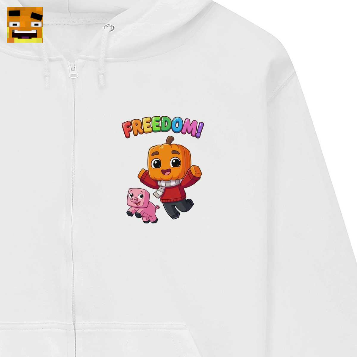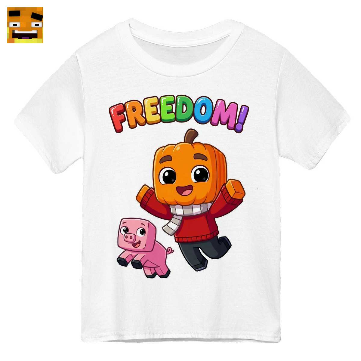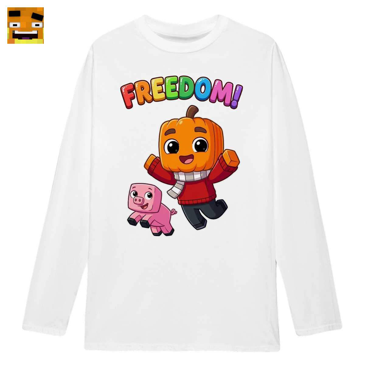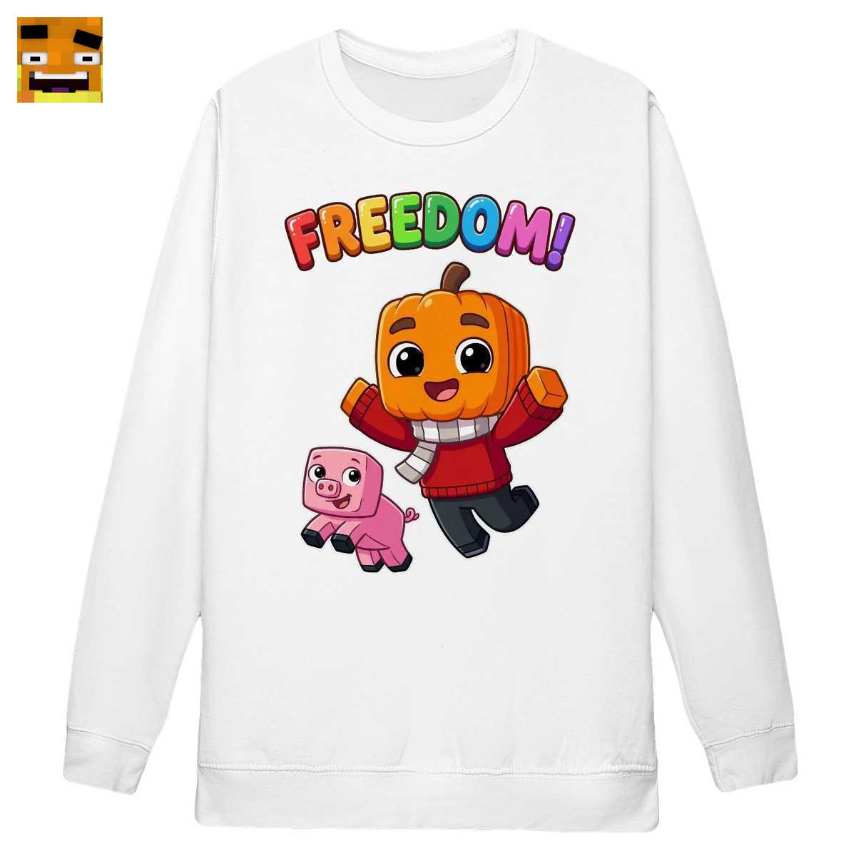 Dieses Shirt ist eine Hommage an das legendäre Minecraft Freiheit Projekt von Paluten. Es fängt die Essenz der Freundschaft zwischen Palles Kürbiskopf-Avatar und seinem treuen Schwein Edgar ein, gekrönt vom ikonischen “FREEDOM!”-Schriftzug, der für Abenteuer, Kreativität und Zusammenhalt steht.