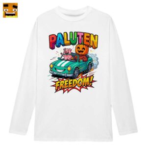 Paluten Merch: Kürbis Gamer & Schweinchen auf Freiheits-Tour – Comic-Stil Fan-Shirt