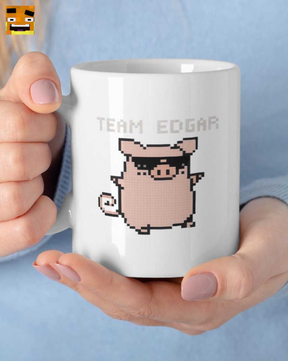 Das Design ist eine liebevolle Hommage an Edgar, das Schwein mit Sonnenbrille, im ikonischen 8-Bit-Stil. Der “TEAM EDGAR” Schriftzug macht die Tasse zu einem unverkennbaren Fanartikel für alle, die Palutens Abenteuer in der Block-Welt lieben und feiern.