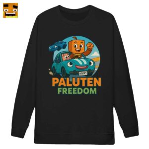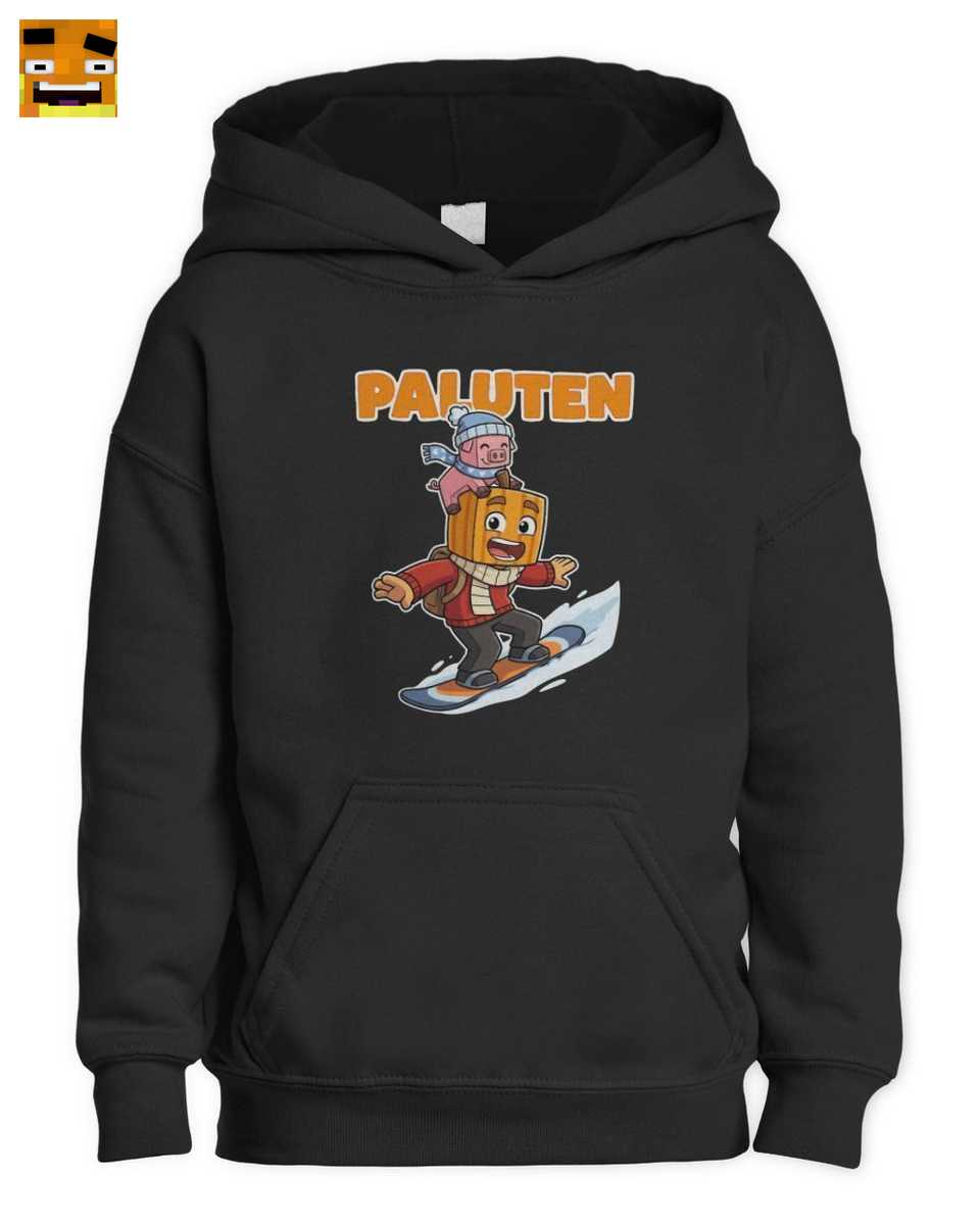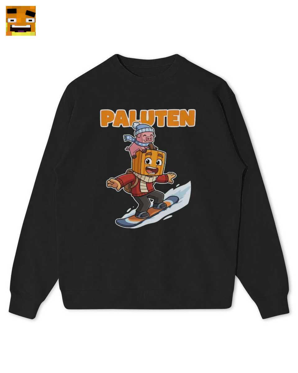 Das Design “Kürbis-Gamer & Schweinchen beim Snowboarden” greift genau diesen Geist auf. Es zeigt die beiden Freunde bei einem actiongeladenen Winterabenteuer – eine Szene, die direkt aus einem ihrer verrückten Projekte stammen könnte. Der dynamische Cartoon-Stil spricht Kinder sofort an und transportiert die positive und energiegeladene Atmosphäre von Palutens Videos. Der markante orange “PALUTEN”-Schriftzug über der Szene lässt keinen Zweifel daran, wem die Loyalität des Trägers gilt. Es ist mehr als nur ein Minecraft T-Shirt; es ist spezifischer, persönlicher und zeigt, dass der Träger ein echter Kenner ist.